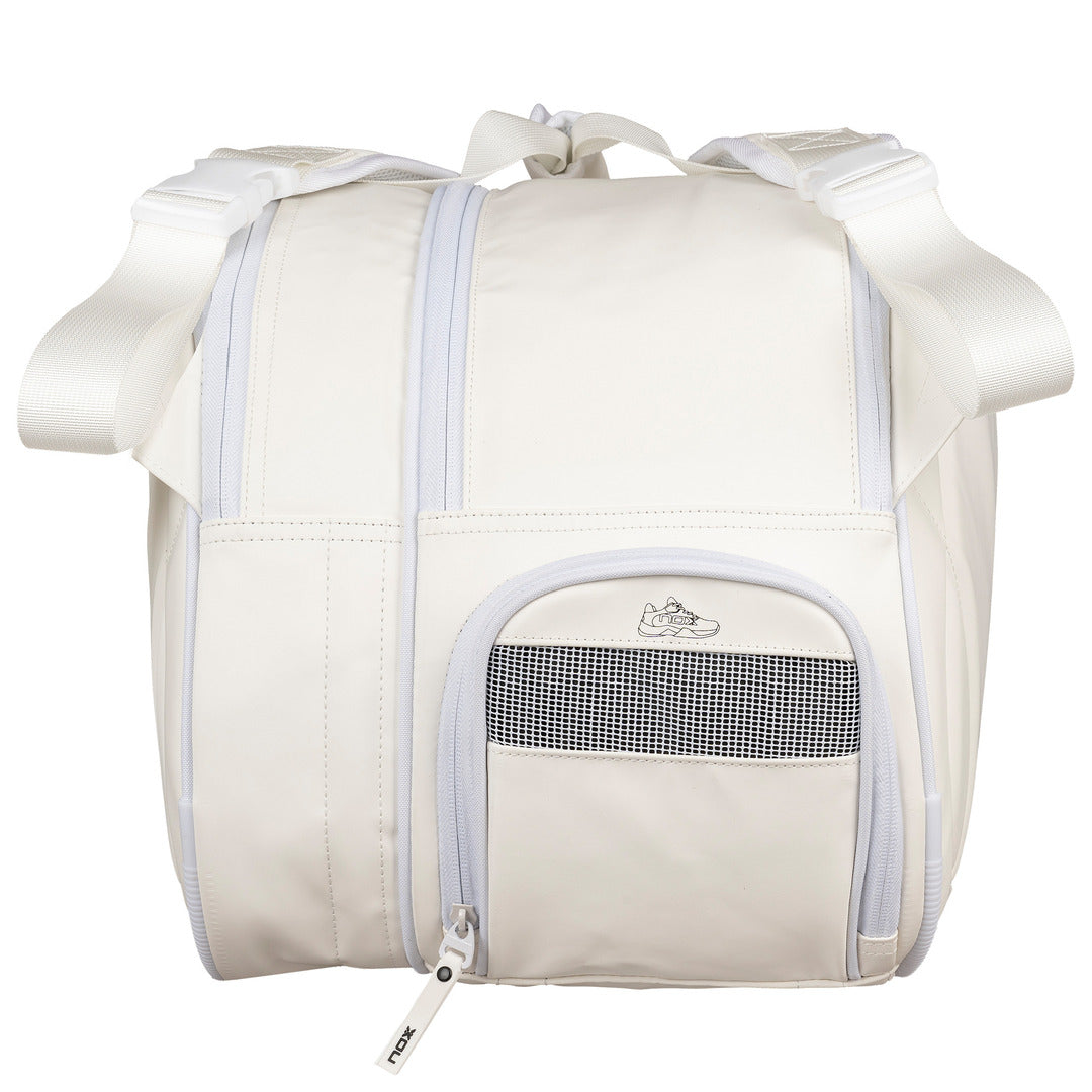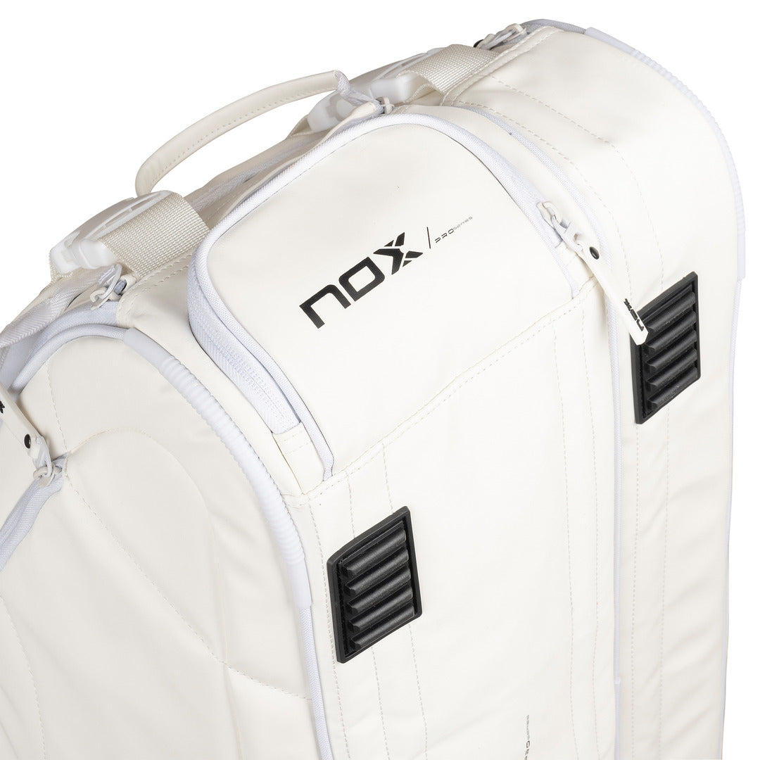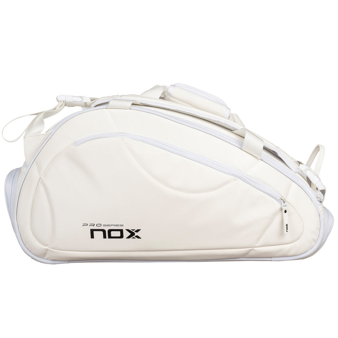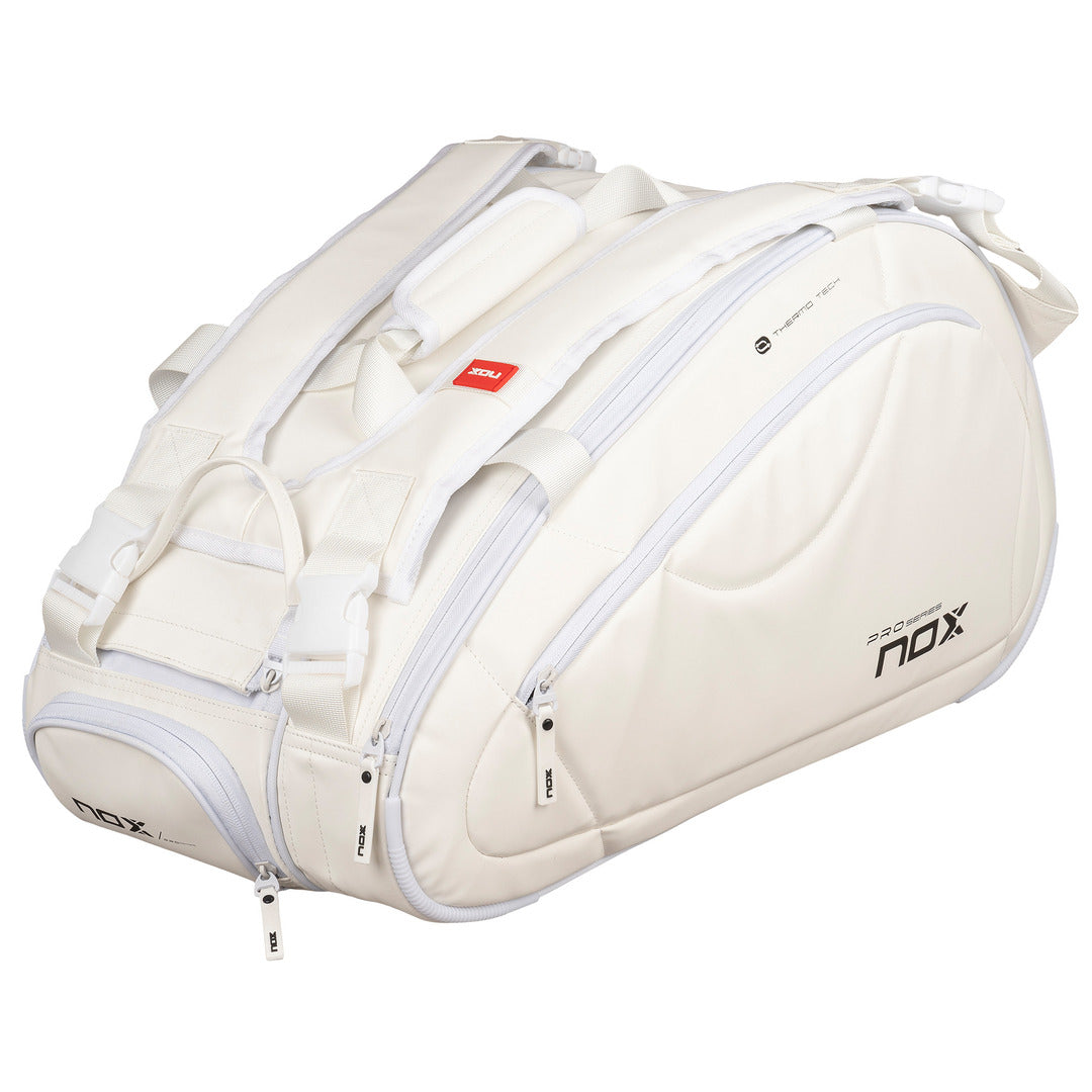 The Nox PRO Series White Bag combines high-capacity storage, thermal protection, and ergonomic design—perfect for elite padel players.